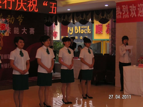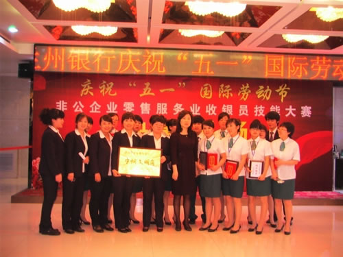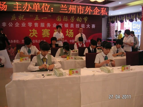 由蘭州市總工會主辦的“非公企業(yè)零售服務(wù)業(yè)收銀員技能比賽” 于2011年4月27日下午,在人民飯店落下帷幕。參加比賽的選手都是來自各公司和企業(yè)的業(yè)務(wù)尖兵,現(xiàn)場壓力重生,但是能和高手同臺競技是挑戰(zhàn),也是幸運,大家都為榮譽(yù)而奮斗。比賽經(jīng)過單指單張、多指多張、機(jī)器點鈔、銀行卡刷卡、即問即答、工裝展示環(huán)節(jié)近四個小時的比拼。最終國芳百貨收銀部取得了驕人的成績,團(tuán)隊授予“巾幗文明崗”,參賽的12名選手在單項成績中,兩人榮獲得一等獎、四人榮獲二等獎、四人榮獲三等獎、兩人榮獲優(yōu)秀獎。