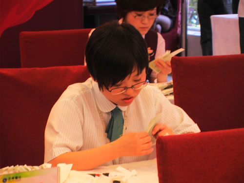 國芳集團(tuán)參賽選手認(rèn)真、快速的清點手中的鈔票,展現(xiàn)出了扎實的基本功