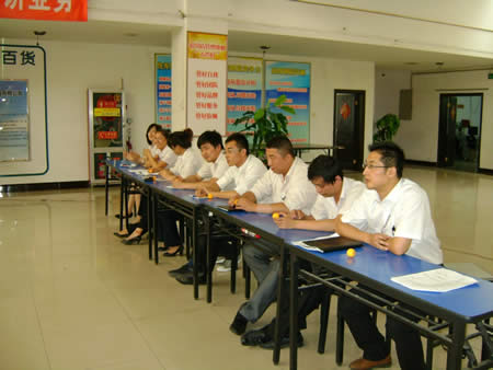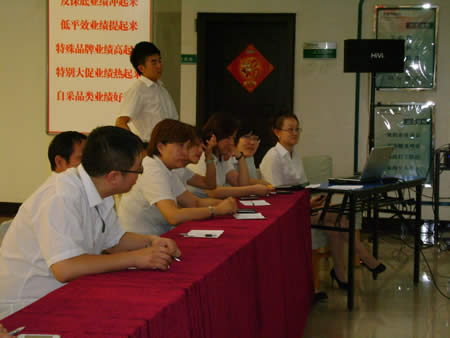 經(jīng)過兩番試卷考核之后,于2011年6月22日下午15:00時(shí)進(jìn)行了第一場(chǎng)實(shí)操PK賽——我來講業(yè)務(wù)部分的競(jìng)技。此次比賽均采用現(xiàn)場(chǎng)電腦隨機(jī)抽題,比賽人員現(xiàn)場(chǎng)準(zhǔn)備現(xiàn)場(chǎng)作答。業(yè)務(wù)展示題目涉及到賣場(chǎng)基層管理人員最核心、最基本的崗位知識(shí)、技能和職業(yè)素養(yǎng),如促銷管理、員工管理、VIP顧客管理、目標(biāo)責(zé)任管理等。