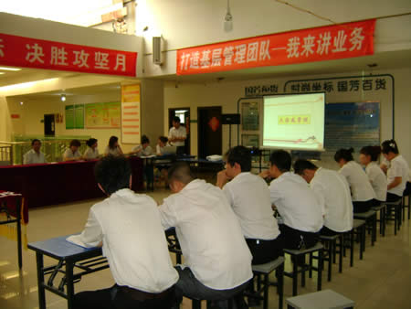 臨近尾聲,我店三樓商品部劉紅經(jīng)理做了總結(jié)性的發(fā)言,她提到目前我店基層管理人員的基本功較為扎實(shí),只是缺少一種鉆研、創(chuàng)新的精神,面上的每個(gè)點(diǎn)大家都清楚,但對(duì)于一個(gè)點(diǎn)的理解、學(xué)習(xí)及鉆研還很欠缺。所以對(duì)于一個(gè)公司還是一個(gè)團(tuán)隊(duì)來講,建立學(xué)習(xí)性組織,比專、比博、比創(chuàng)新就顯得尤為重要。這也對(duì)我店今后的培訓(xùn)工作提出了一個(gè)引導(dǎo)性的方向。