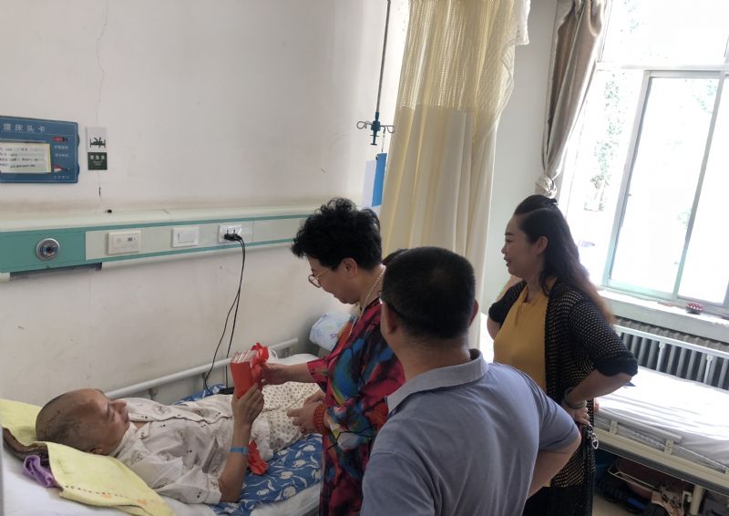 “這是公司的一點心意,希望能幫助你們度過難關…”6月28日下午,甘肅國芳工貿(mào)(集團)股份有限公司董事會董事、財務總監(jiān)兼工會主席,人力資源總監(jiān)以及黨委常務副書記一行人驅車趕往蘭州大學第一醫(yī)院東崗院區(qū),慰問公司患病職工閆世忠,并代表公司送上愛心捐款50000元,令閆世忠及其家人備受感動和鼓舞。