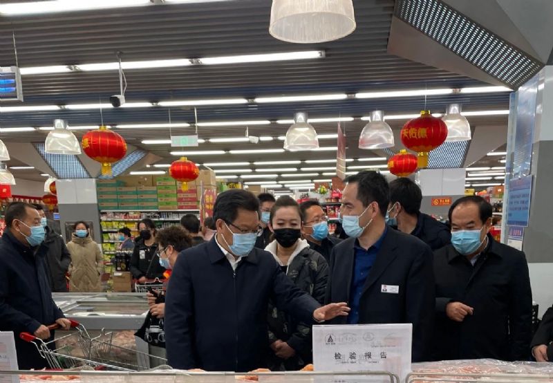 2月10日,甘肅省委副書記、省長任振鶴,甘肅省委常委、蘭州市市委書記李榮燦,甘肅省政府秘書長李志勛,甘肅省市場監(jiān)管管理局局長王忠習(xí),蘭州市市長張偉文等省市領(lǐng)導(dǎo)一行調(diào)研指導(dǎo)春節(jié)保障供應(yīng)及慰問超市一線員工。