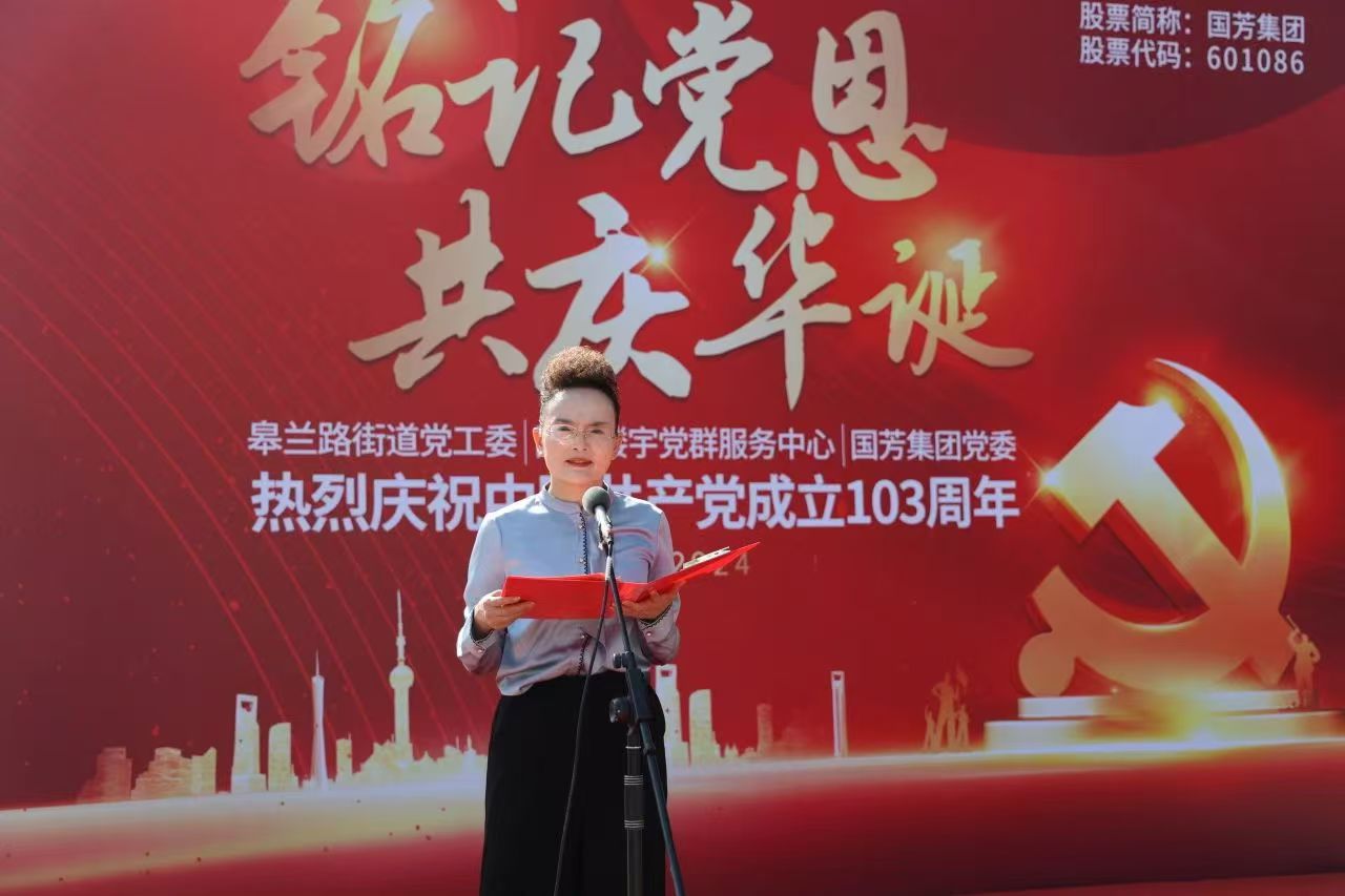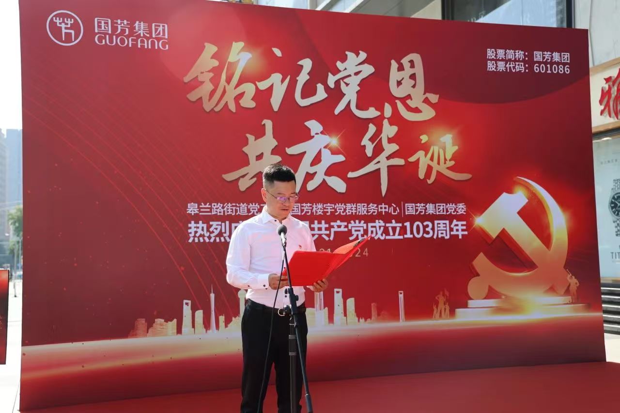 為慶祝偉大的中國共產(chǎn)黨建黨103周年,進(jìn)一步貫徹落實黨的二十大精神和習(xí)近平總書記關(guān)于黨紀(jì)條例學(xué)習(xí)教育的重要講話和指示精神,豐富黨員和員工文化生活,在七一建黨節(jié)即將來臨之際,國芳集團黨委協(xié)同皋蘭路街道黨工委、國芳樓宇黨群服務(wù)中心入駐企業(yè)黨組織共同舉辦“銘記黨恩、共慶華誕”慶祝中國共產(chǎn)黨建黨103周年主題黨日活動。
